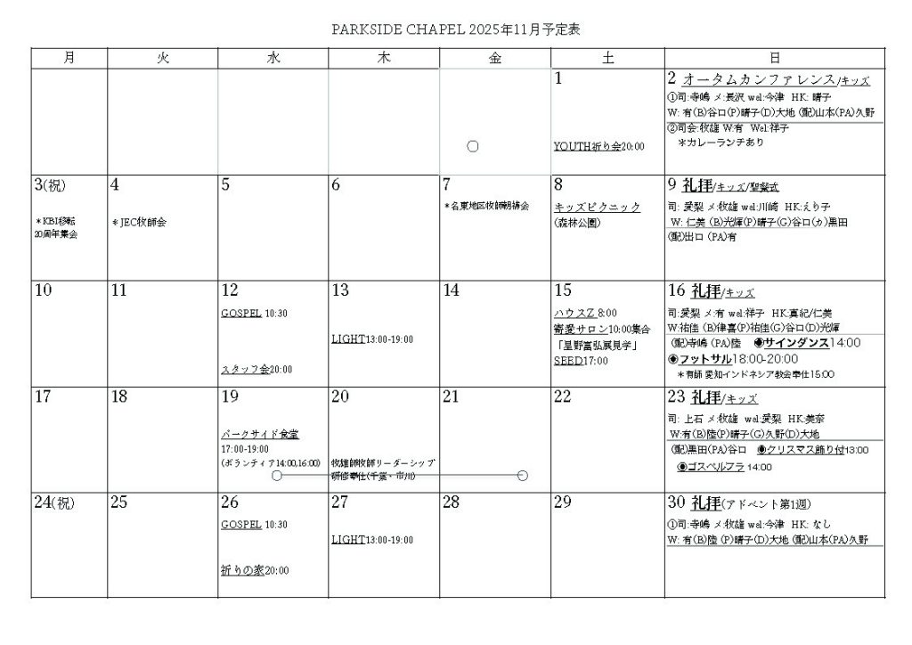 11月のスケジュール